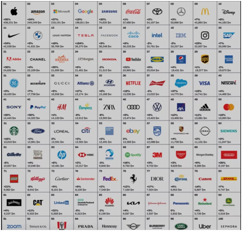 2021年全球品牌100強榜單,食品飲料行業(yè)占 16席